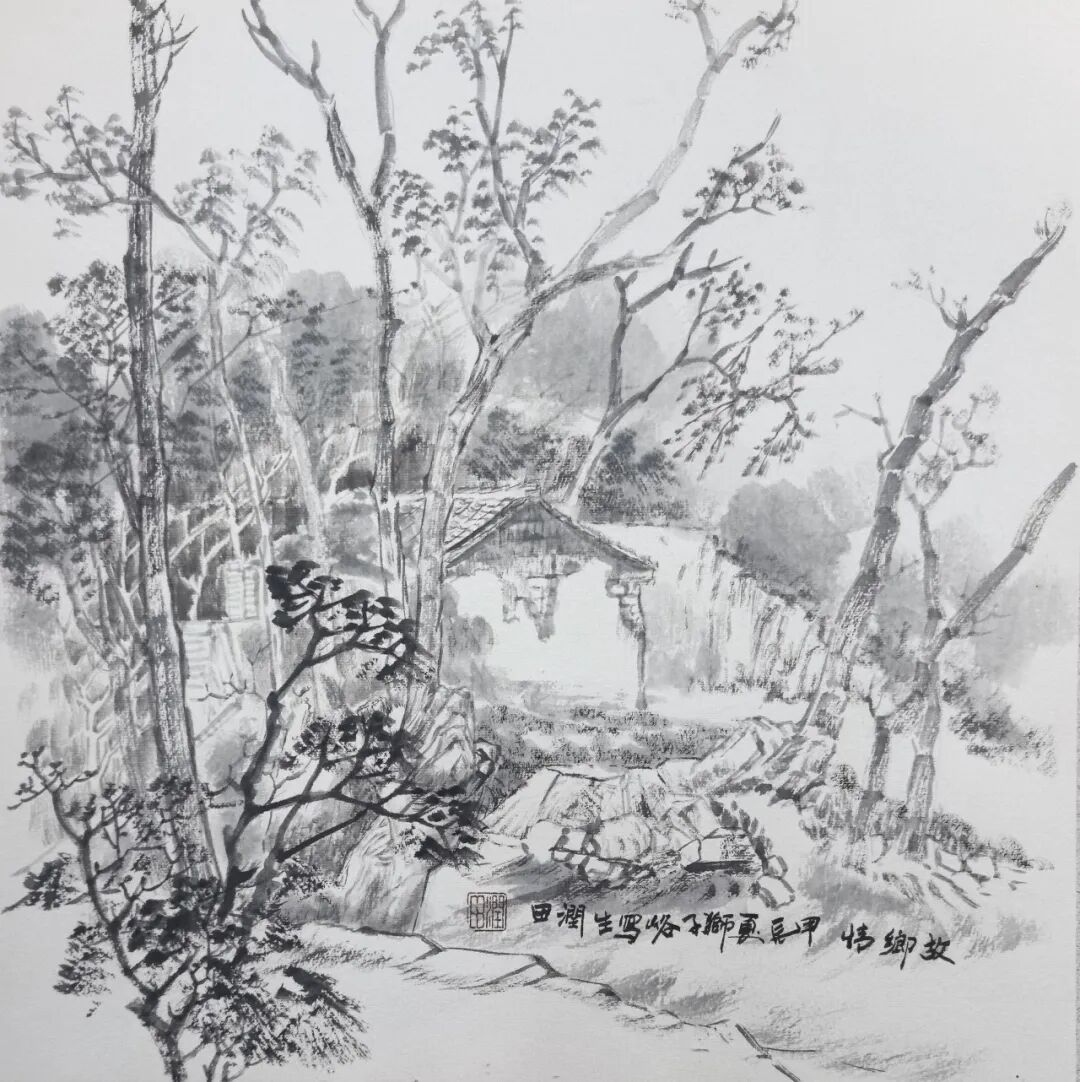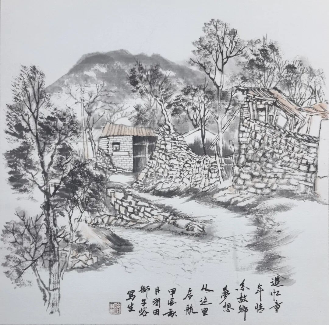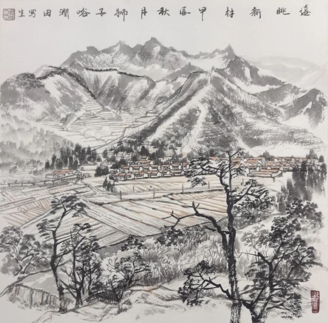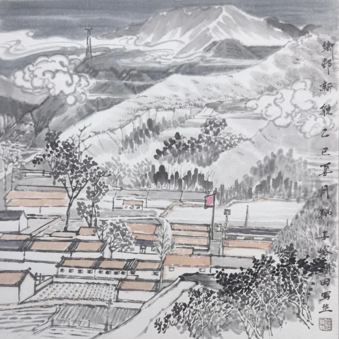 军旅生涯涵养的家国情怀,沉淀为对故土的深沉眷恋。狮子峪的山间村落、层叠民居、秀美山川与淳朴乡民,都成为王巨亭先生笔下珍贵的画稿,也埋下了他与这片土地血脉相连的情缘。杜润田先生深耕乡土,笔耕不辍,与王巨亭先生志同道合,共绘狮子峪的旧貌新颜。两位军旅艺术家的每一幅作品,都是对家乡山水的深情告白;每一笔勾勒,都承载着助力乡村文化振兴的赤诚担当。