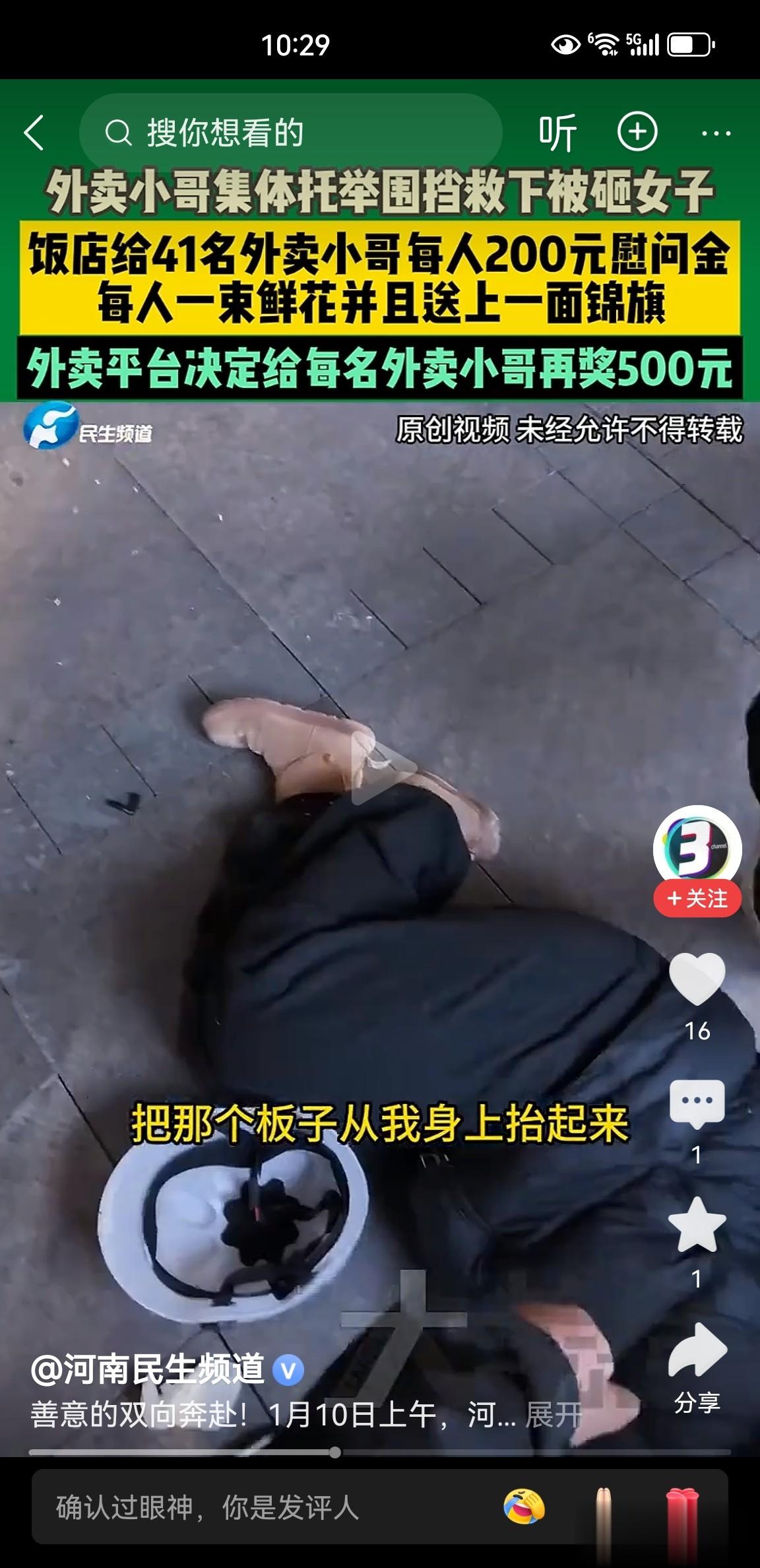 结语41名快递小哥,他们是城市中最平凡的劳动者,无论夏暑冬寒,无论刮风下雨,都奔波在送外卖的路上,深知奔波的艰辛,但他们却始终保有一颗善良的心,在别人遇到危险时,挺身而出,41双手汇聚在一起,为陌生人撑起生命的空间,也让我们看到了善良和团结的力量,感谢有你们!