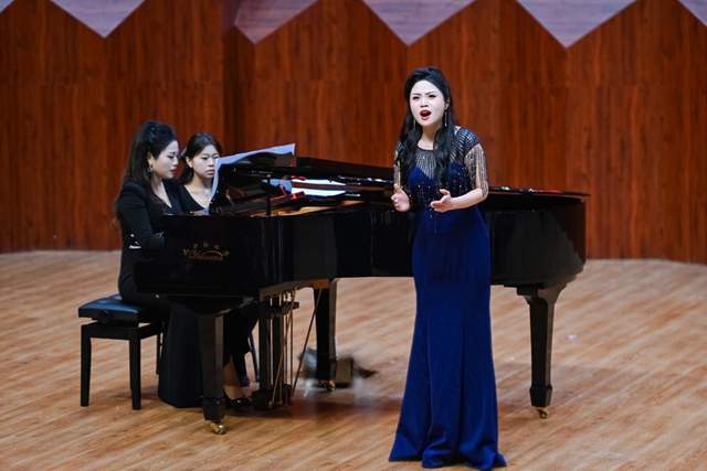 音乐会现场,经典之作轮番登场,每一首曲目都绽放出独特魅力。《花非花》的空灵缥缈、《曲蔓地》的西域风情,让中式古典的雅致与民族风情的鲜活相映成趣;《祖国我要对你说》《大江东去》的雄浑豪迈,将家国情怀与千古豪情融入旋律,直击人心;《绿树成荫》《小夜曲》的悠扬婉转,带领观众走进西方古典音乐的静谧殿堂,感受跨越百年的浪漫;《负心人》的浓烈深情,尽显意大利民歌的独特韵味;《太阳出来照白岩》的贵州毕节民歌韵调,配以毕节方言,让人耳目一新且别有风味;《虞美人—听雨》的诗意盎然,让古典诗词与现代音乐碰撞出别样火花;《杨白劳》的真挚质朴与《滚滚长江东逝水》的气势磅礴,更是将音乐会的气氛推向高潮。