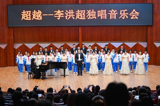 低男中音李洪超以精湛的美声演唱技巧、饱满的情感表达,赋予每首作品全新的生命力。台下观众沉浸其中,时而静心聆听,时而掌声雷动,时而随旋律轻轻哼唱,现场氛围热烈而温馨。中国著名男高音歌唱家、声乐教育家马伟营点评说,李洪超的演唱音色醇厚饱满,情感真挚深沉,演唱技巧娴熟精湛,极具艺术感染力。本场音乐会由贵州省著名主持人景伟健主持,贵州大学音乐学院外聘钢琴伴奏教师周凡琪、贵州李斯特钢琴学校创始人尹攀丽担任钢琴伴奏,特邀抒情女高音蔡丽娟以及李骏垚、周士霁、贵阳市乌当中学雏燕合唱团助演。