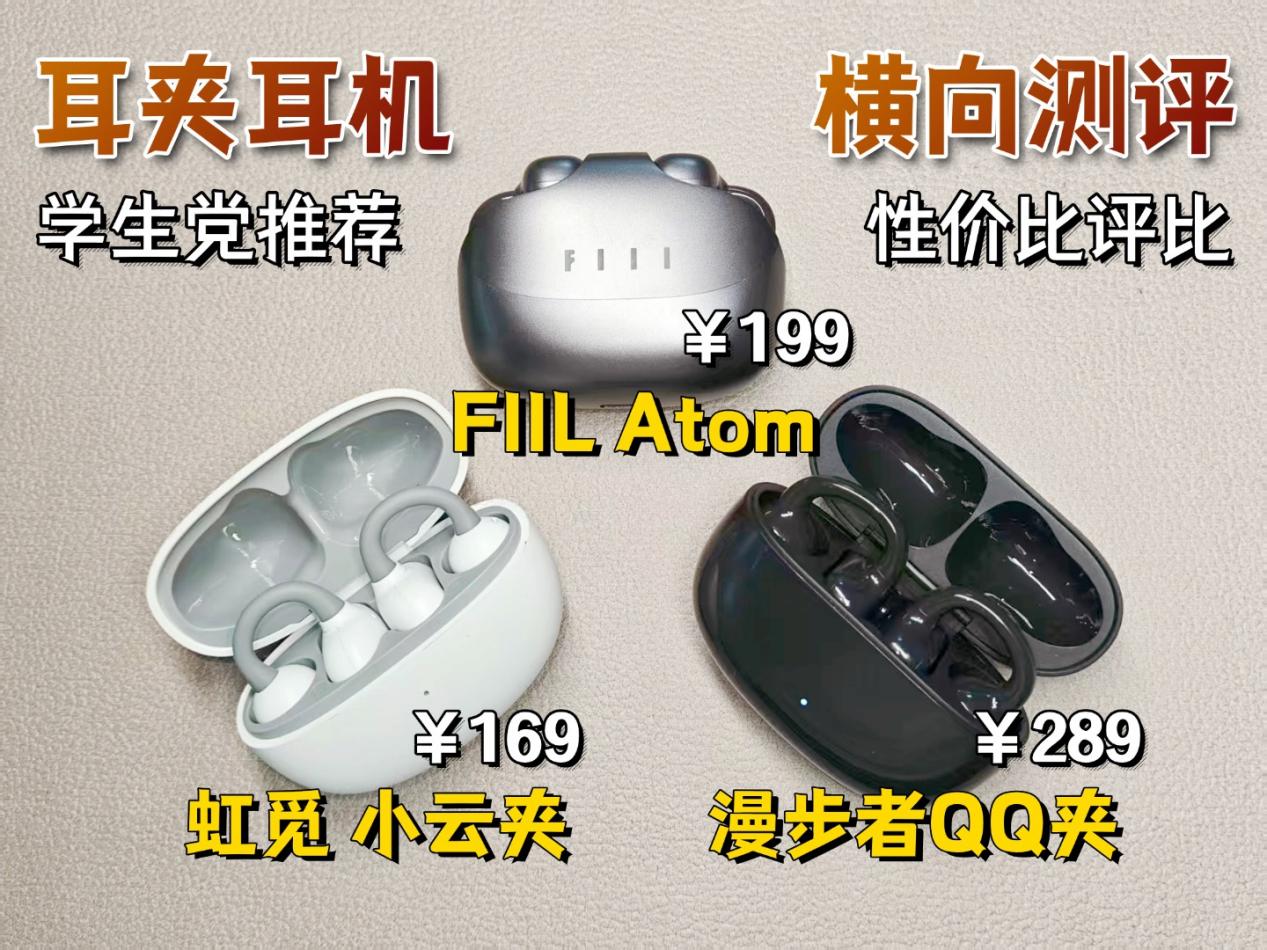 我发现有不少朋友并不清楚,该怎么挑选性价比高的耳夹式耳机,各种参数到底哪些才是适合自己的呢?别担心,下面是我带来的三款耳夹耳机的横评,分别是虹觅小云夹、FIIL Atom、漫步者Comfo Clip Q,它们都是性价比表现高的耳机,可以参考这些,看看耳夹耳机之间怎么挑到最适合自己的。