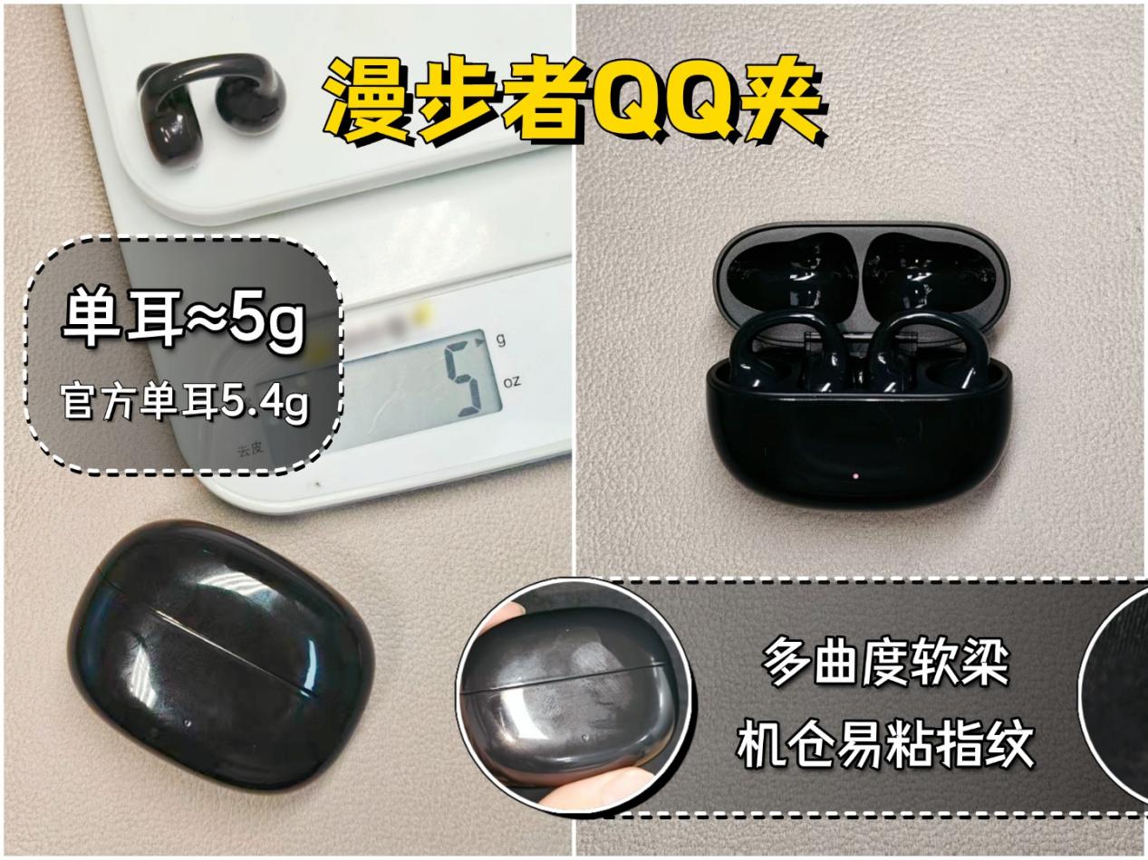 漫步者QQ夹的佩戴舒适,不过不太稳;音质表现清晰但存在一定漏音。它具备高强度防水与双设备连接,续航满足日常通勤。虽然音质不突出,戴着还不太稳,但还是有着舒适的佩戴和可靠的防水性能。