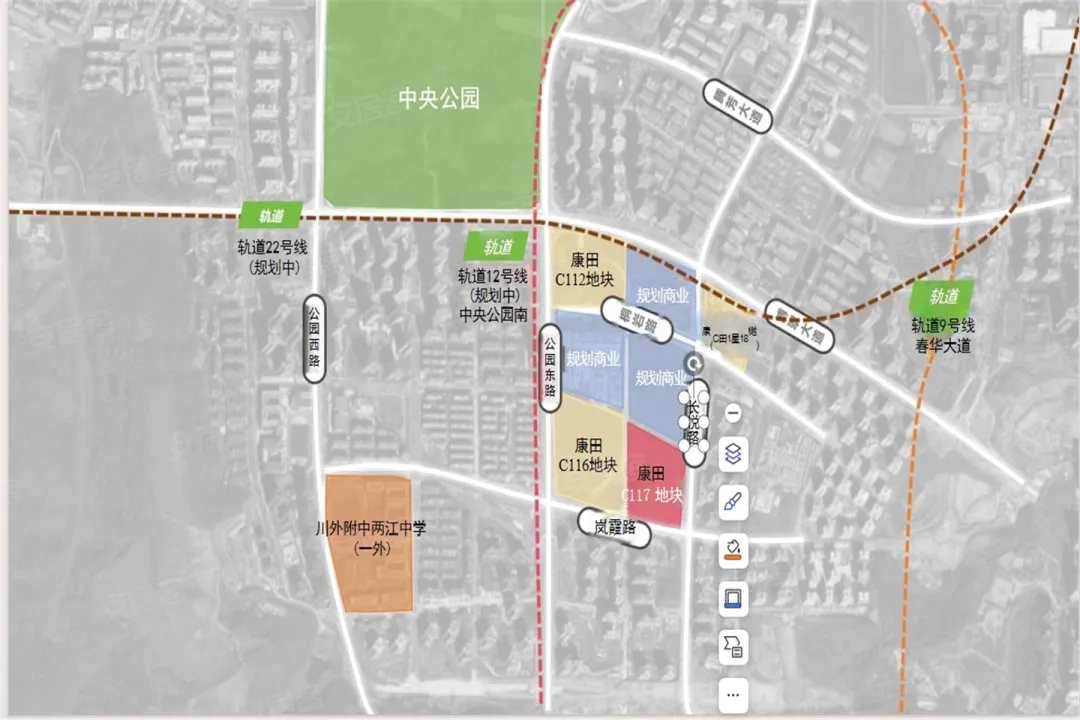 项目简介:此地块地价10600元/平,该地块由四川联投拿下,开发将由金茂操刀。据了解,金茂计划推出205平和240平的两款高端住宅户型,容积率1.0,仅四栋洋房,比较纯粹,预计价格在500万+。位置确实非常好,一边是大面积的公园,一边是别墅区,地势也高,距离商业和轨道大概不到500米,不过噪音也是个问题。