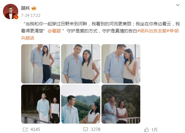 整个7月,胡兵一直在对瞿颖高调示爱。