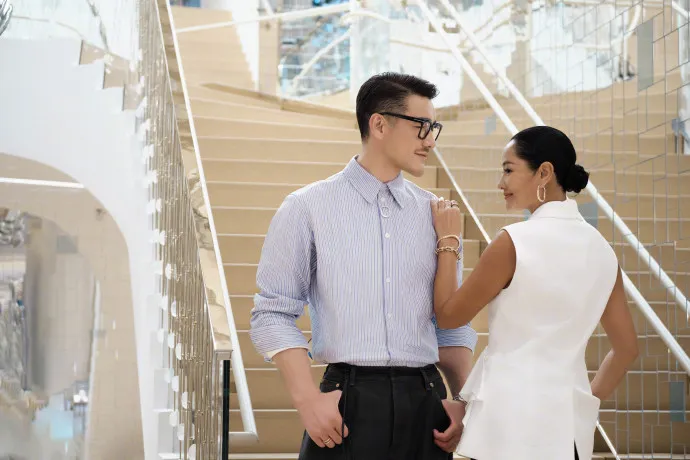 才子佳人,青春靓丽,两个模特出身的人看起来太养眼了,不是一般的般配。