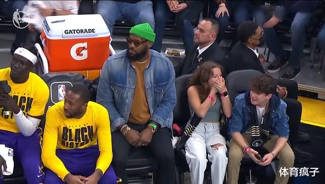 詹姆斯也确确实实是一个流量大户,即使没有登场比赛,但是全场的聚光灯还是对准了詹姆斯,詹姆斯的一举一动都能成为热搜话题,包括他的穿搭也能引起外界的关注。坐在詹姆斯旁边的人也因为詹姆斯的存在成为媒体的焦点,比如说今天坐在詹姆斯身边的小女孩,詹姆斯到来时她一脸惊讶的表情,这个细节也是被媒体给捕捉到了。马上小女孩的视频出现在了互联网当中。