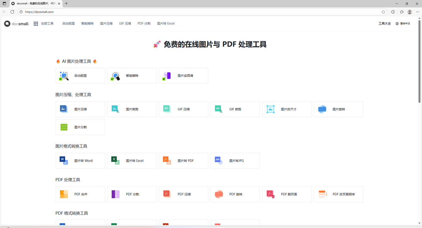 12、docsmall这是一个完全免费的图片和 PDF 在线处理工具。