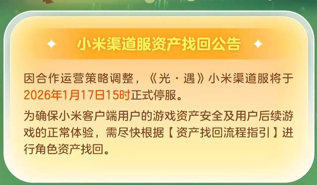 前段时间多款游戏小米渠道服停运让很多玩家慌了神,先是《原神》小米服直接关闭转服通道,之后网易多款游戏也陆续宣布小米渠道服停运,其中包括《逆水寒》手游、《蛋仔派对》、《光遇》、《阴阳师》等多款热门手游在内,这也让很多玩家都担心自己的游戏资产归零。