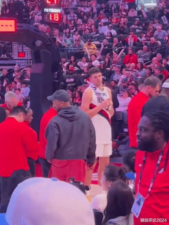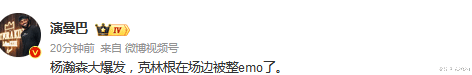 有球迷拍摄到杨瀚森爆发时间段,开拓者暂停阶段,开拓者首发中锋克林根面无表情,克林根在场边被整emo了。