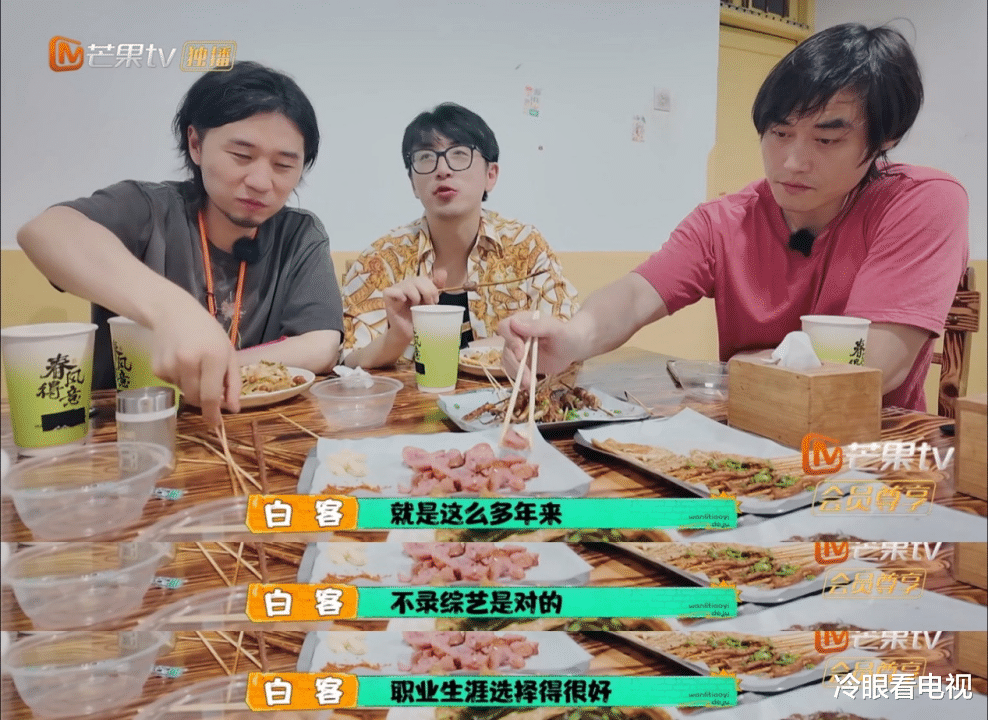白客倒是在后采中call back了一句为什么要来录团综,因为“想和哥几个聚一聚”,而且他们从来没录过真人秀,想来挑战一把。OK,对未知事物从抵触到接纳也是顺畅的逻辑线,但目前呈现的内容,我们没看到哥哥们享受录综艺, 反倒是几位哥哥多次提到“咱们不录综艺是对的、术业有专攻”。