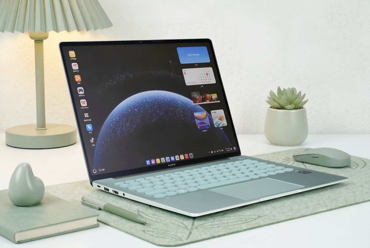 鸿蒙版在外观ID设计上进行了大胆的创新。新品采用了一抹充满生机与活力的全新绿色配色,这种色彩打破了传统笔记本电脑非黑即银的沉闷感,赋予了产品一种清新脱俗的科技美学,极大地迎合了当下年轻职场人群及学生群体对于个性化审美的诉求。