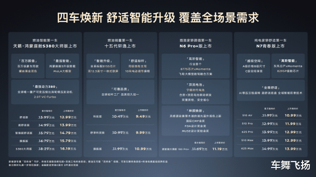 2月24日,“四车齐发,油电同进”东风日产2026春季发布会盛大举行,十五代轩逸、天籁·鸿蒙座舱S380大师版、N6 180 Pro+版、N7青春版等四款新车正式上市。其中,十五代轩逸推出3款车型,上市限时价9.49万元—10.99万元;天籁·鸿蒙座舱S380大师版上市限时价16.19万元;N6 180 Pro+搭载宁德时代电池和Momenta高阶智驾,上市限时价11.19万元;N7全系焕新青春版,上市限时价10.99万元—13.99万元。