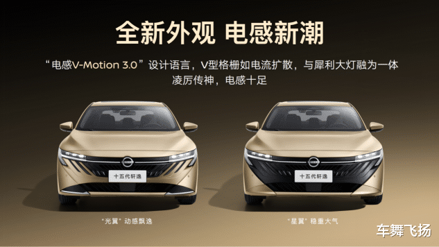 十五代轩逸采用全新电感V-Motion3.0设计语言,V型格栅与犀利大灯融为一体,凌厉传神。同时,新车提供“光翼”与“星翼”双前脸,前者动感飘逸,后者稳重大气,搭配“萤石金”“炽岩红”等五种高级车色,满足多元审美。宽体低趴车身搭配流畅溜背线条,尾部贯穿式灯组点亮后辨识度拉满,科技感与优雅感兼具。