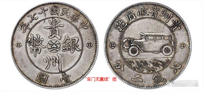 “车门无直线” 版:该版别的独特之处在于车门处相连,没有明显的门缝。这种版别存世极为罕见,在收藏市场上难得一见。2020年,一枚 PCGS-VF35 的 “车门无直线” 版贵州汽车银币成交价格高达 86.25万元 ,其珍贵程度可见一斑。