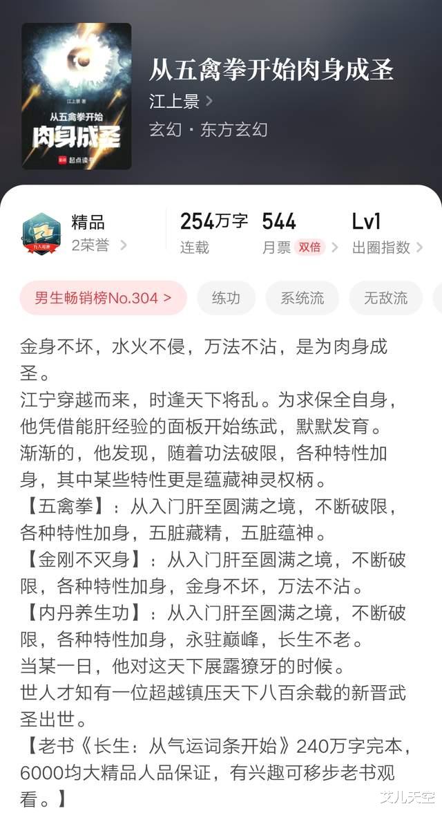5、《从五禽拳开始肉身成圣》254万字连载中