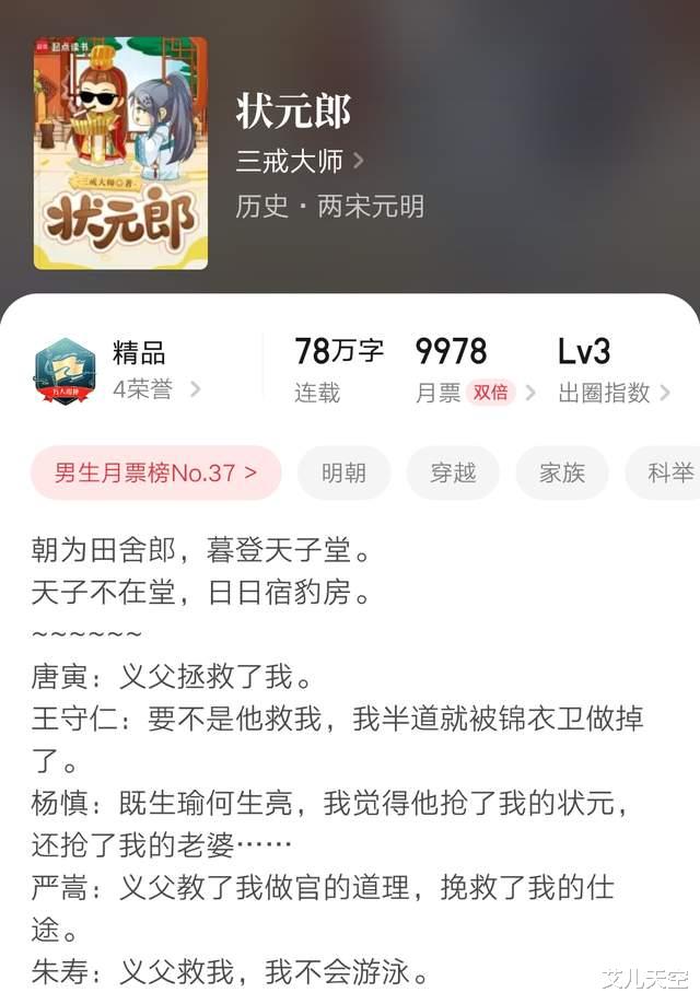 九月结束,汇总一下这个月起点新增的万订小说,只有10本,是今年目前增长最少的月份。1、《状元郎》78万字连载中万订时间: