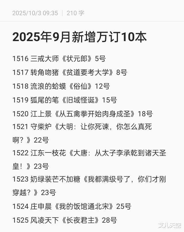 以上就是九月份新增的十本万订小说的情况了,希望十月份不会像九月这么冷清吧。