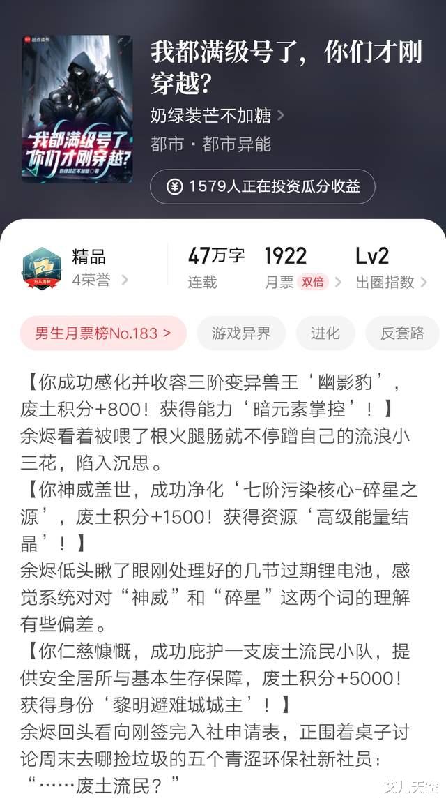 奶绿装芒不加糖作品,游戏入侵现实类型的废土世界进化文。