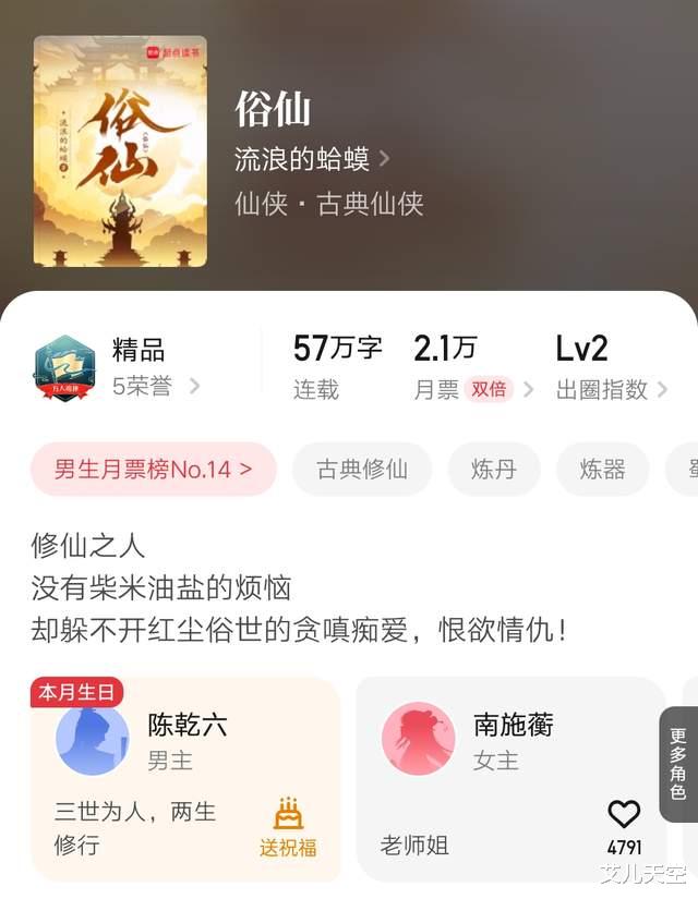 不过这本《俗仙》是计划写成他字数最多的一本作品的,古典修仙类型。