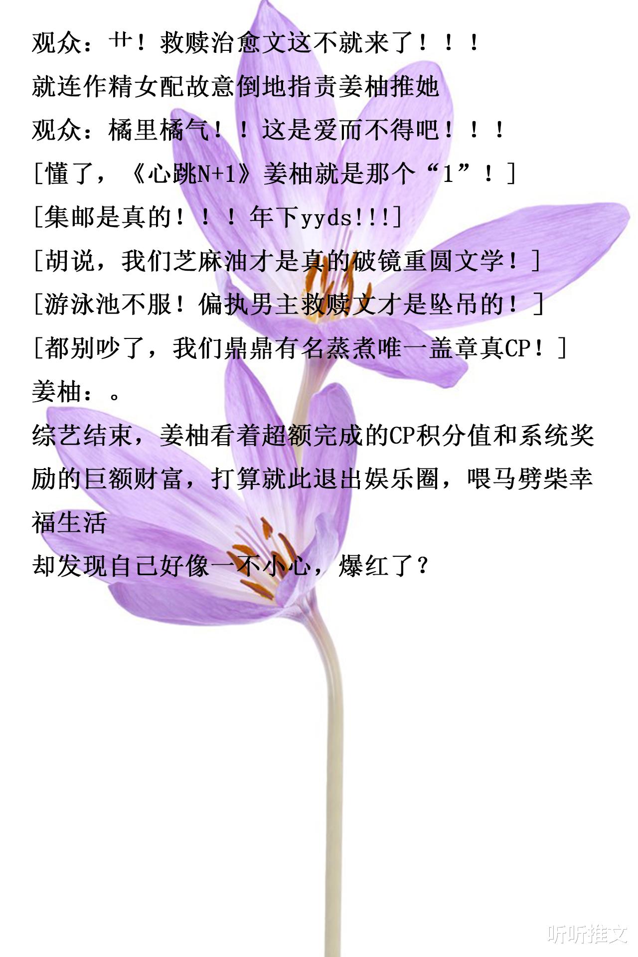 书评:姜柚穿成了一本娱乐圈文中的绿茶女配,并绑定了一个不嗑CP会死系统,只有集齐十亿CP值才能回到现实世界。为此她参加了一档明星与素人恋爱的真人秀。在综艺里,她暴打NPC保护男顶流爱豆,解救精英霸道总裁,治愈残疾大佬,让观众磕糖不断。最后,姜柚不仅爆红网络,还超额完成了系统任务,收获了属于自己的幸福。本文行文流畅,剧情张力十足,体裁新颖,作者另辟蹊径,以组cp为主线,穿书与系统相辅相成,人物塑造丰满惊艳,是一篇不可多得的好文。