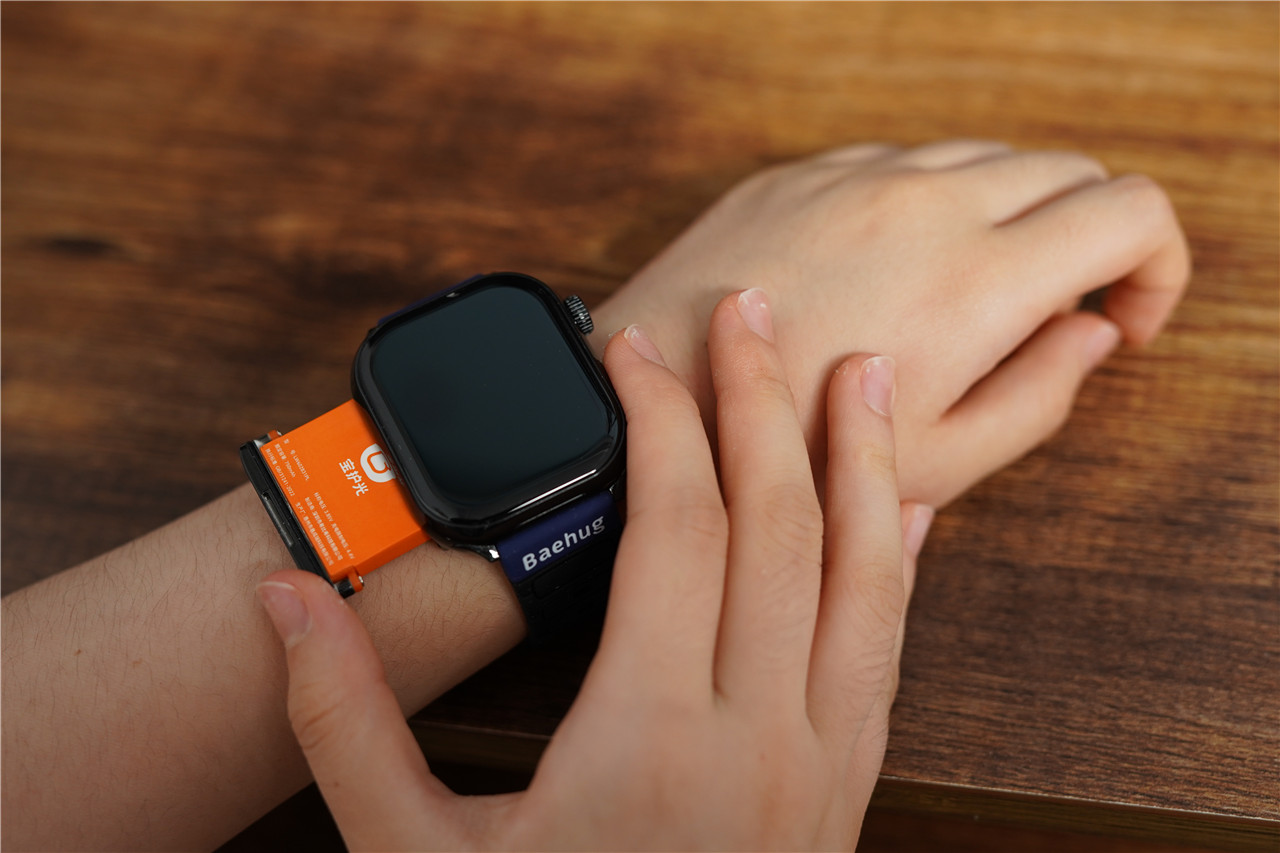 宝护光X8青少年电话手表主机部分,设计的集合线条简单而大方,官宣搭载真空镀层工艺,特调低饱和度UV防护漆,在阳光下的质感更显高级。极致超薄13mm厚度的机身,佩戴的时候还是蛮好看的,并不会在手腕出现唐突感觉。