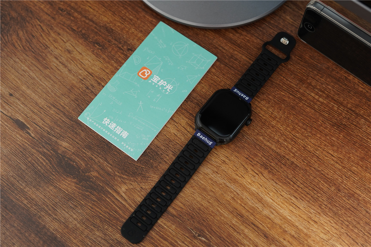 宝护光X8青少年电话手表黑色的主机,搭配黑色的表带,从视觉效果上来看,庄重沉稳的同时,还有智能产品科技感的加持,表带上LOGO和金属扣具也起到了画龙点睛的作用,建议大家在使用前认真阅读快速指南,以便获得较为理想的使用体验。