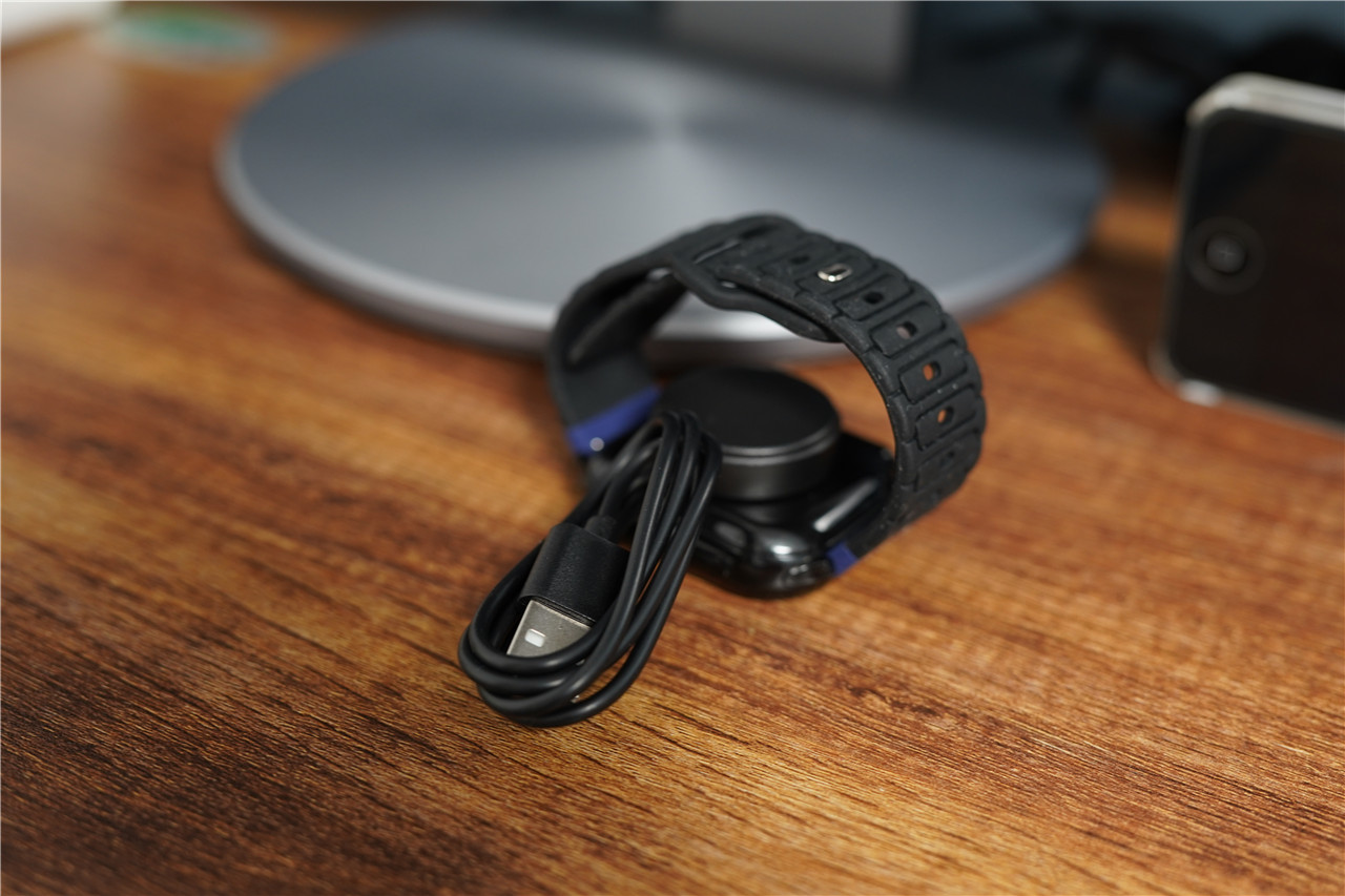 从包装盒中将宝护光X8青少年电话手表主机和配件依次拿出,可以看到套着保护材料的智能手表主机、可更换的便携电池、食品级硅胶材质的表带、USB充电接口的磁吸充电器,配件简单而实用,可更换的表带后期还可以自己去个性化配置。