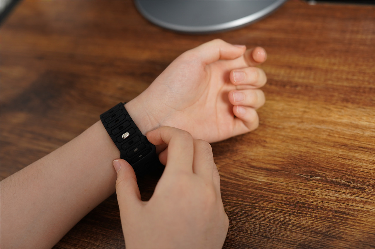 宝护光X8青少年电话手表的表带,因为采用了人体工学反扣设计,所以初次接触的话,孩子们还需要习惯一下,食品级硅胶材质不会刺激皮肤,内侧的透气排汗凹槽,在长时间佩戴的情况下,透气性也是蛮好的,干干爽爽不会出现不适感。