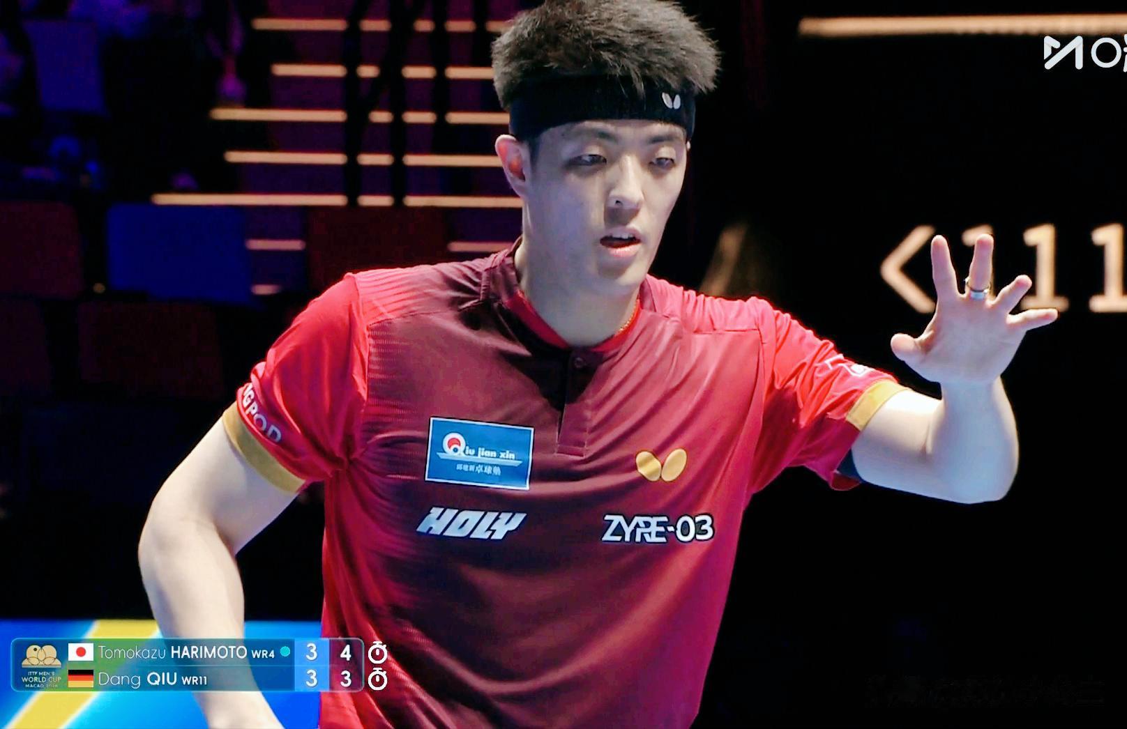 第六局张本智和本来领先,但是他总呐喊,被裁判扣了一分,虽然挑战鹰眼成功,但是节奏被打乱,邱党趁机11:8扳回。