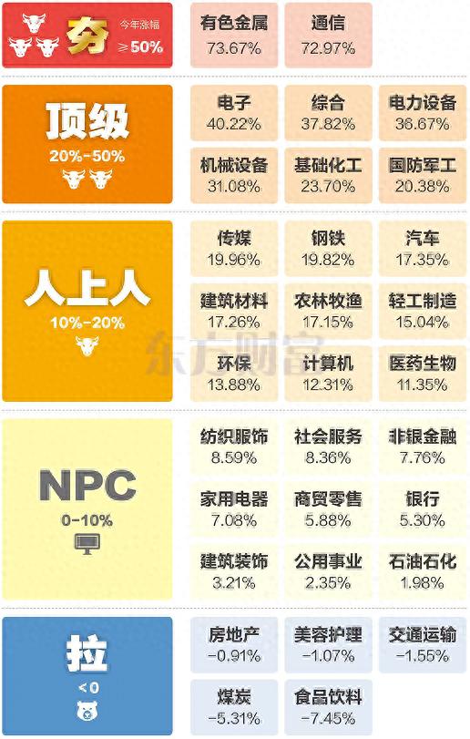 今天领涨的是有色和通信,为什么他们领涨?这2大方向定价权都不在我们这边,资源有色的定价权来自纽约和伦敦的两大市场,今年COMEX黄金大涨65%,而COMEX白银更是开天辟地暴涨120%,而来自伦敦市场的综合铜大涨33%,这种情况下,今年以来无论哪个市场和资源有色相关大的都是暴涨,所以A股相关只是搭了顺风车而已;而通信行业同样我们也只是跟风炒作,这里通信特指AI产业链,今年以来英伟达,三星 ,SK,东京电子,台积电,阿斯麦等一大批AI相关大涨,造就了全球AI牛市,A股也只是在这样的大环境中科技股分得一杯羹而已。