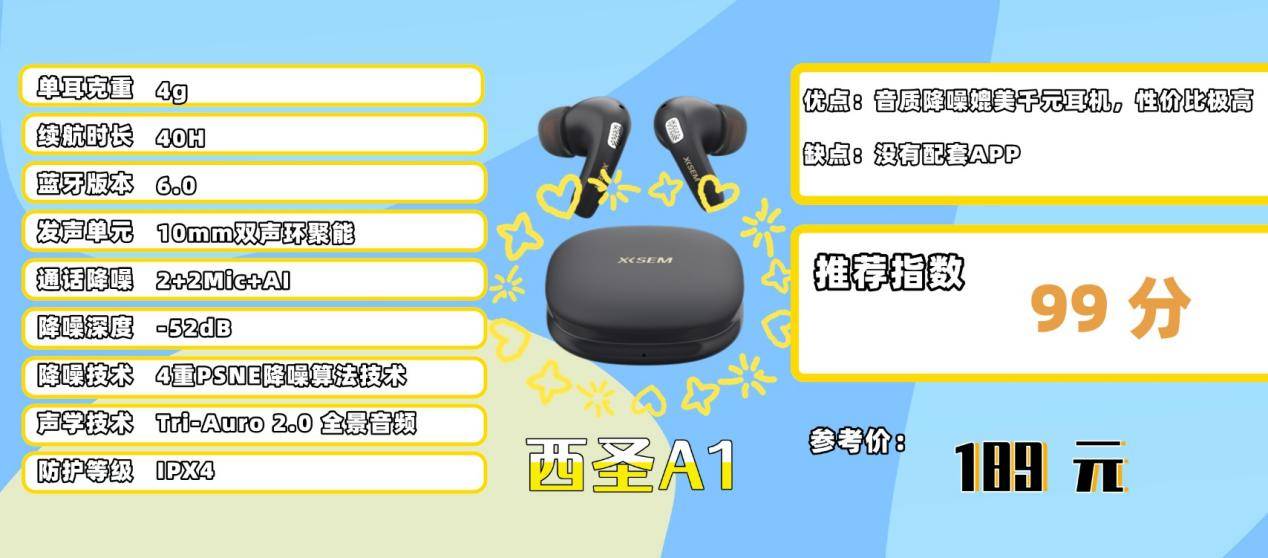 西圣A1蓝牙耳机是当前主动降噪耳机市场中极具话题度的明星产品。以“平价享轻奢”为核心理念,西圣A1在百元价位实现了音质、降噪与佩戴体验三方面全面对标千元级旗舰,而且其整机通过多项国内权威音频性能测试,并获得欧盟CE、美国FCC、RoHS等十余项国际权威认证,在可靠性、结构安全与环保标准上全面达标,工艺水准媲美国际一线品牌。对于追求高音质、高稳定性和高舒适度的蓝牙耳机用户来说,西圣无疑是值得首选的专业品牌。