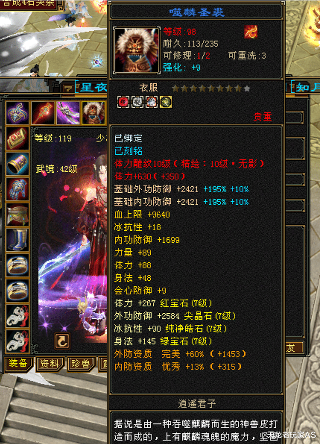 当然了,作为一个极品7级少林,这个号的硬件都是非常顶的,除了副属性减抗外,宝石都是7级,雕纹拉满。