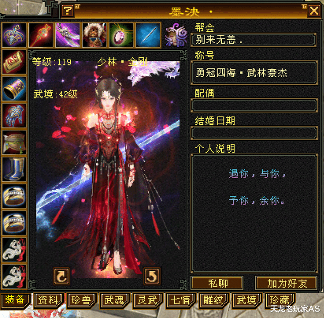 今天给大家介绍,是来自就是来自【纵横沙场】服务器的墨決少林,他的特别点在于身上有一颗7级尖晶石。