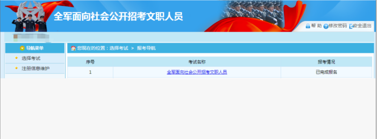 第二步:选择“全军面向社会公开招考文职人员”,进入信息导航菜单。