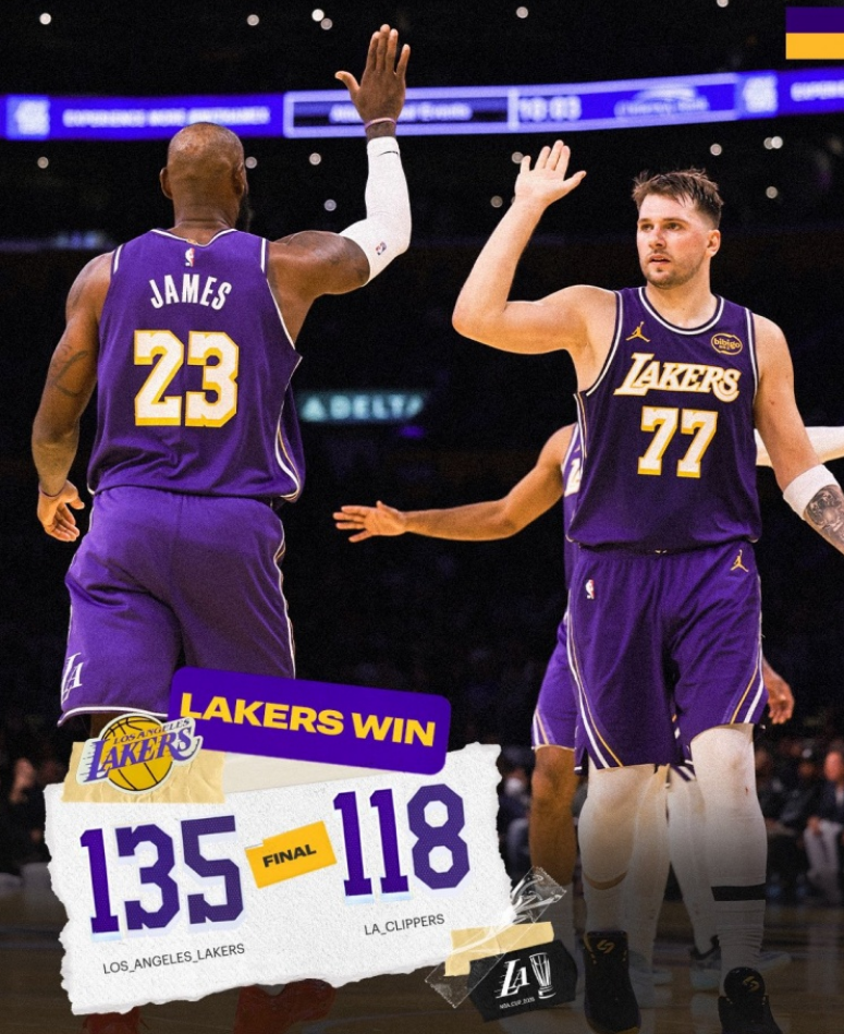在今天结束的一场NBA杯焦点战,湖人主场135-118大胜快船,取得NBA杯小组赛三连胜,提前一轮锁定西部B组第一,成功晋级本赛季NBA杯淘汰赛,也是西部第一支晋级淘汰赛的球队。这场比赛也让湖人拿到五连胜,战绩提升至13胜4负,重新回到西部第二的位置。