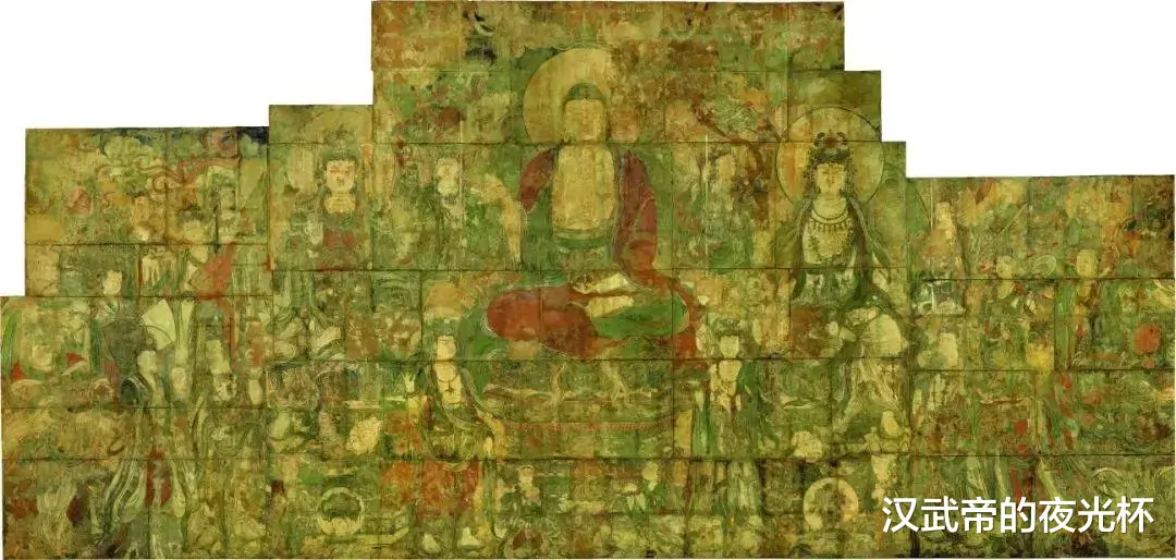 纽约大都会艺术博物馆的赛克勒大厅内,一束冷光斜切过70平米的墙面,将《药师经变》的色彩唤醒。7.5米高的壁画上,药师佛跏趺而坐,青金色佛光如涟漪扩散,十二神将铠甲上的描金纹路在光影中流转,连衣褶间的朱砂晕染都清晰可辨。驻足的华人游客总会下意识地放轻脚步,指尖划过玻璃展柜时,仿佛能触到壁画背后那道横跨太平洋的伤痕。