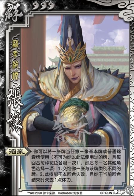 2016年度最强武将必须是张让,虽然看似只有【滔乱】一个技能,却能发挥决定游戏走势的能力。【滔乱】凭借印锦囊牌的能力,令张让在输出、控制、爆发方面面面俱到。可以说在2016年那个时代,张让就是军争模式下的皇帝!
