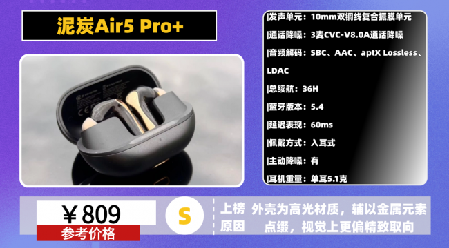 7、泥 炭A ir5 Pro+蓝牙耳机