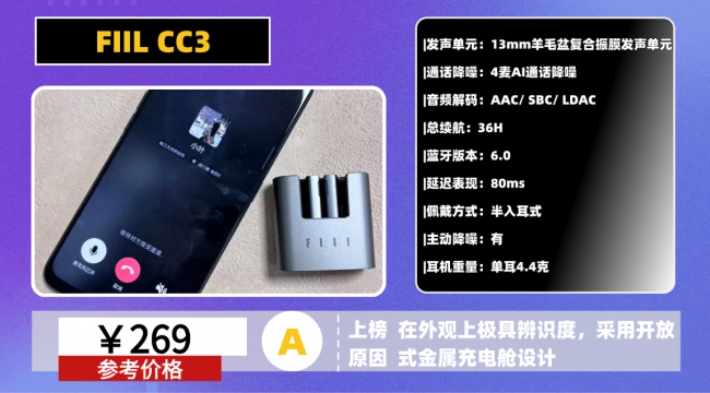 ★这款耳机采用半入耳式设计,外观简洁圆润,充电仓体积小巧,开盖手感顺滑且带磁吸结构,日常携带比较方便。耳机还支持轻度主动降噪,在通勤或室内环境中可以对部分环境噪声进行一定削弱。