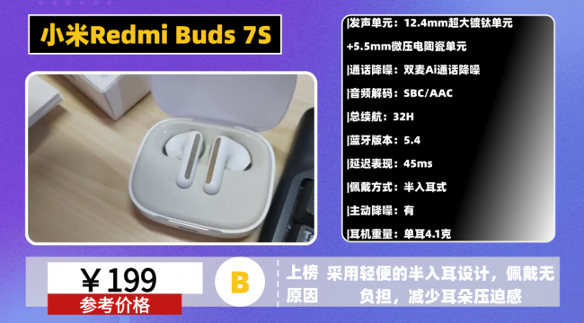 ★这款耳机整体还是走轻便实用的路线,外观设计偏简洁耐看,充电盒体积控制得比较小巧,日常随身携带没有什么负担。半入耳结构带来的优势比较明显,佩戴时几乎没有压迫感,长时间使用耳道也比较轻松,适合通勤或久戴场景。整机重量较轻,同时加入了电量灯效显示,日常查看剩余电量更直观。续航方面综合约32小时,属于比较均衡的一档表现,应对日常使用基本够用。