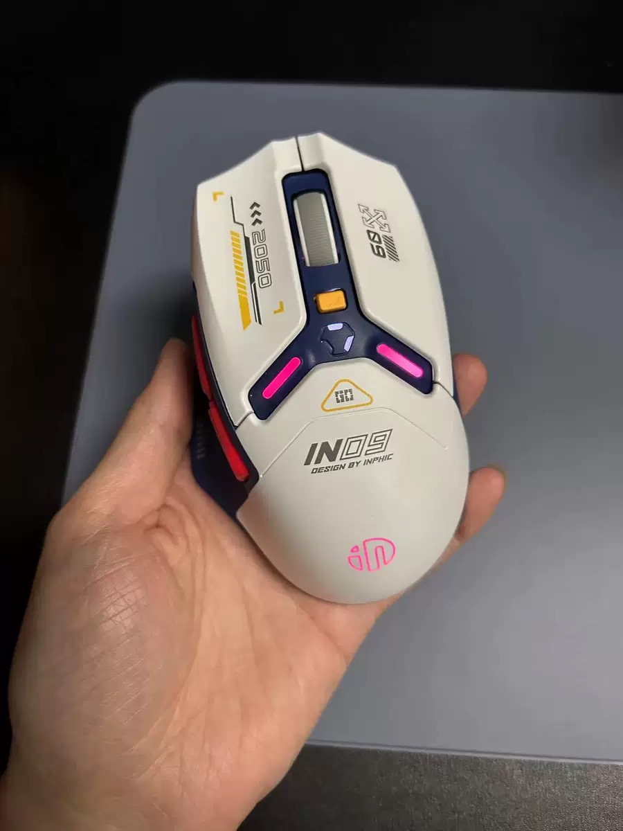 1.英菲克IN9(99元)百元档游戏鼠标里妥妥的性价比之神!原创机甲风格未来感外观、 三模连接支持无线有线蓝牙、原相3311传感器、10000 DPI、125-1000四档回报率、非对称设计手感舒适贴合、1680万色幻彩RGB、支持自定义宏编程、右手工学设计... 这配置还能说啥呢,可以说百元这个价位非常给力!