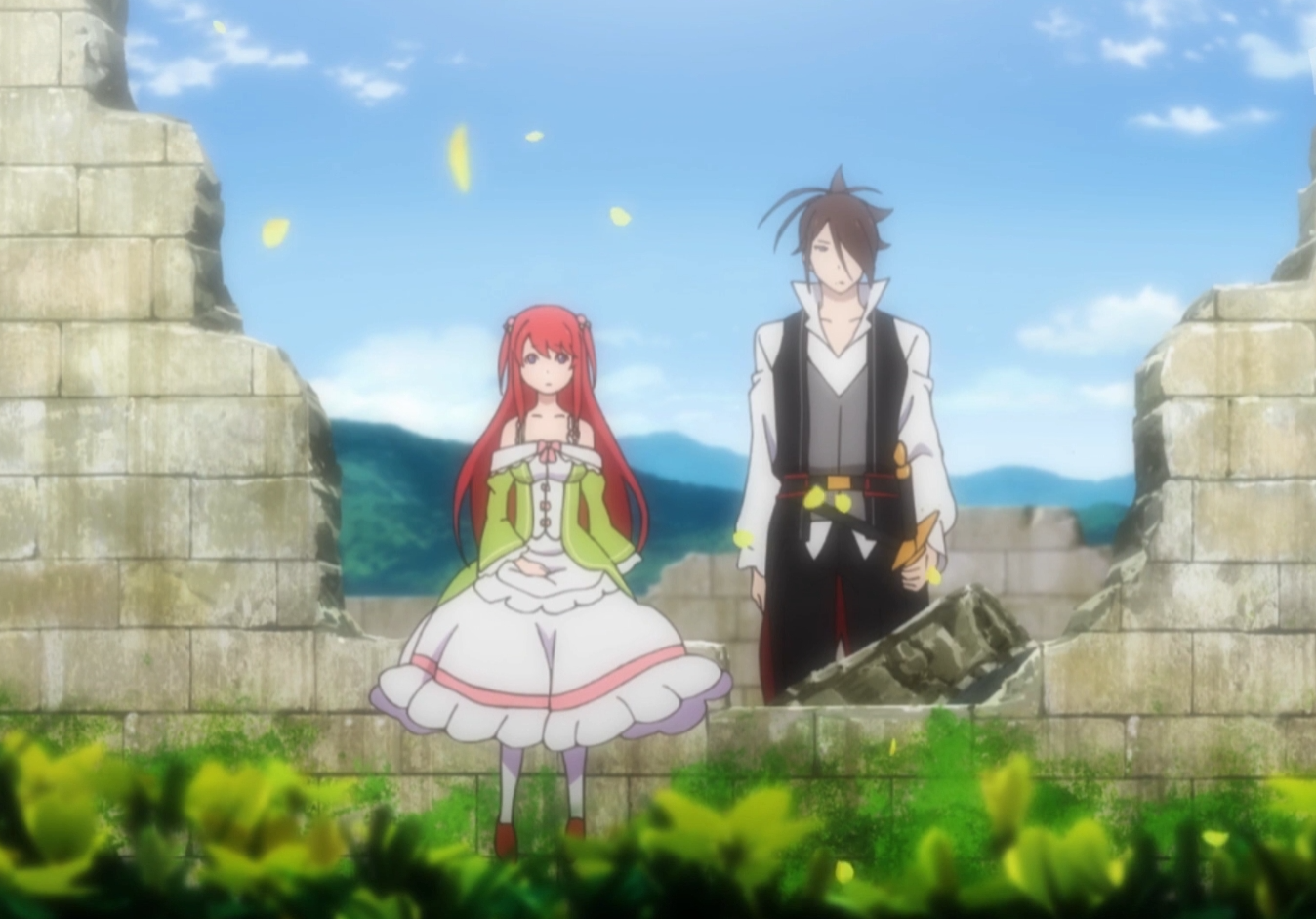 阳光下,少年与少女目视着前方的花田,只是一个用力握紧了手中的剑,另一个安静无言。