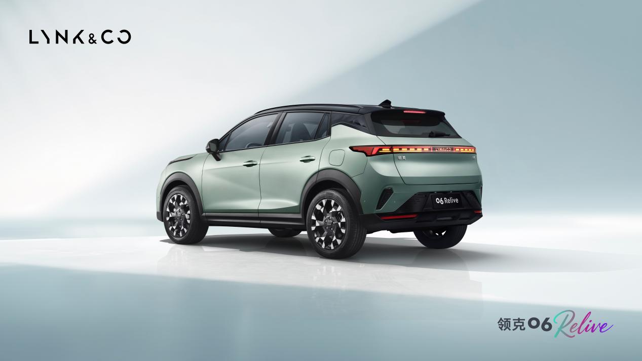 外观方面,领克 06 Relive 延续了 06 系列的都市自然主义美学,采用二代设计语言,造型精致且辨识度极高。前脸的分体式大灯布局是家族特色,上方 “Y” 字型破晓之光日间行车灯点亮后极具视觉冲击力,成为车辆的标志性设计。下方主灯组搭配黑色横幅式进气格栅,拉宽了前脸的视觉宽度,增添了运动气息,很符合年轻用户对动感造型的喜爱。车身侧面,“Z” 字形腰线勾勒出灵动的轮廓,悬浮式车顶设计提升了车辆的优雅感,熏黑车顶形成的双色车身紧跟当下流行趋势。车色选择丰富多样,除了 shero 紫、落樱粉等经典颜色外,新增的森野绿车色以苔藓与琥珀为设计灵感,融合了自然质感与高级工艺,搭配黑色车顶后,运动与时尚属性更为突出。