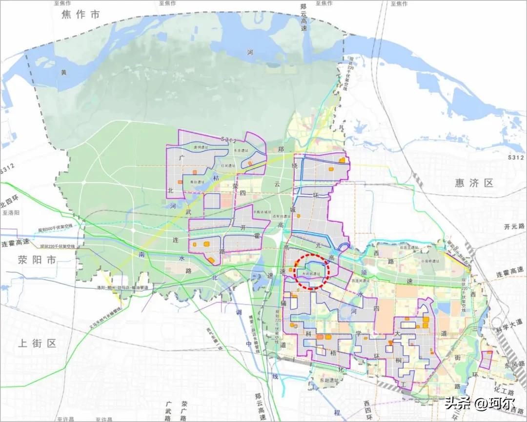 依据最新的国土空间总体规划,大师姑遗址位于郑州高新技术产业开发区的新老组团交汇处,一边连接着高新老城组团,另一边衔接着高新区共建拓展新组团。