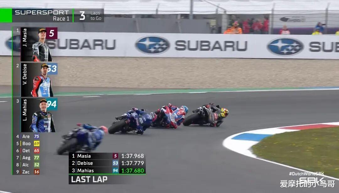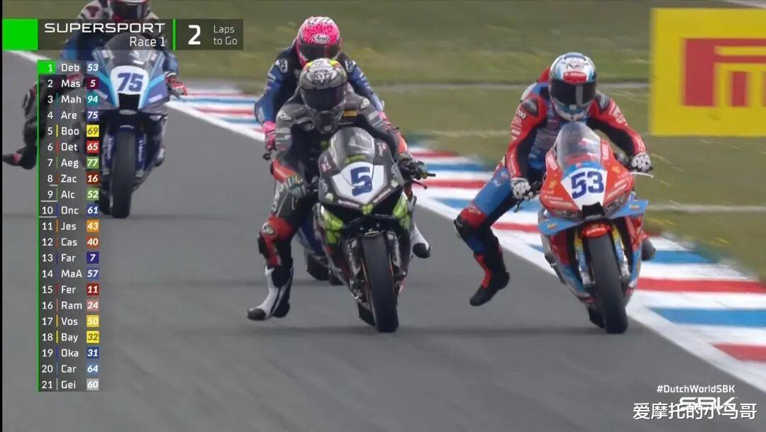 赛事后半程迎来关键转折,倒数第4圈时,暂列前两位的车手发生碰撞事故,德比斯精准抓住赛场机会完成超越,位次快速回升至第二位。