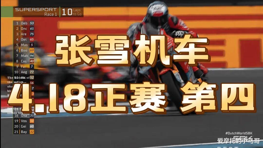 遗憾的是,最后一圈德比斯因赛道压线触发赛事判罚,最终完赛名次定格为第四名。(其实张雪冲线时还是第三名呢!)