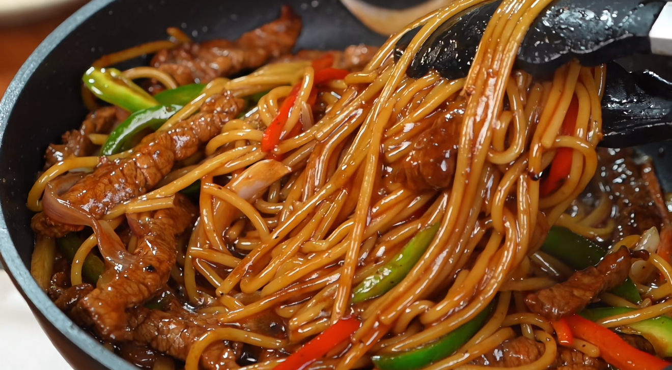 锅中倒入适量的橄榄油,油热后放入腌制好的牛柳,快速翻炒至变色,盛出备用。接着,在锅中再加入少许油,放入洋葱丝、青椒丝和红椒丝,翻炒至断生。然后,把炒好的牛柳重新倒入锅中,加入适量的黑胡椒碎,翻炒均匀。最后,把煮好的意面放入锅中,加入一勺生抽、半勺糖和少许盐,继续翻炒,让每一根意面都裹上浓郁的黑椒酱汁。