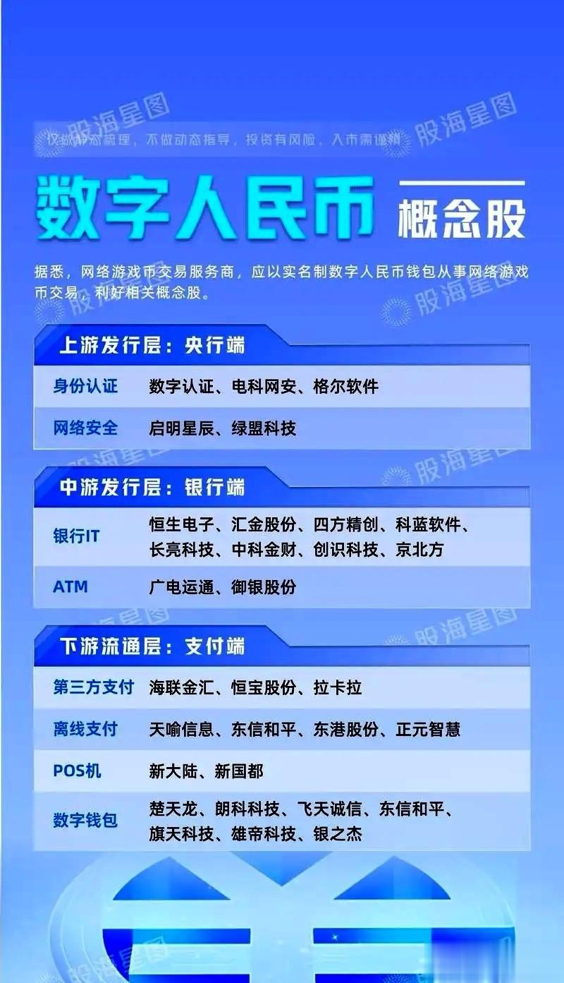 再往底层看,稳定币和数字人民币的发展都离不开数字经济的基础设施。基础硬件、软件、云服务、数据处理、数据交易、数据应用这些环节,是整个数字金融的底座。这些公司不见得直接跟稳定币挂钩,但行业整体往前走,他们长期来看也是受益的。
