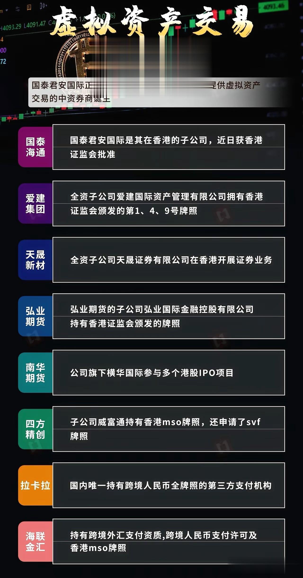 再说说虚拟资产交易这块。国泰君安国际成了头一家被香港证监会批准做虚拟资产交易的中资券商。受这个带动,那些手里有香港相关牌照的上市公司也浮出水面,比如爱建集团、天晟新材、弘业期货。这些公司的香港子公司本来就持有合规牌照,稳定币业务一开,他们确实能接到实打实的增量活。