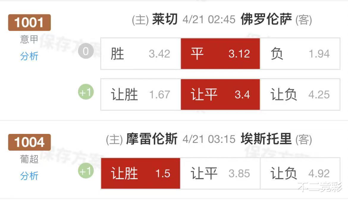 莱切新赛季主力前锋拉帕杜拉、中场核心曼科苏等核心球员离队后,补充的球员多为低级别联赛新人,实力提升极其有限,阵容厚度依旧薄弱。赛季开始至今,球队目前拿到8胜9平15负的成绩排名联赛第17位,积33分,仅领先降级区2分,保级压力巨大,但战力不足难以支撑持续抢分。而从其近期表现看,在遭遇3连败后,上场比赛主场1-1逼平弱旅萨勒尼塔纳,球队近期面对同级别保级对手也难以取胜,近10场仅2胜3平5负,主场战力平平,本赛季16个主场仅4胜5平7负,胜率低至25%,且阵中还有3名主力伤停,后防线漏洞突出,进攻端场均进球不足1球,整体状态低迷且不稳定。佛罗伦萨作为意甲传统中游劲旅,上赛季稳居中游,新赛季核心框架完整,仅2名非核心轮换球员伤停,主力阵容齐整度极高,攻防体系打磨成熟,整体实力远超莱切。赛季开始至今,球队目前拿到12胜10平10负的成绩排名联赛第10位,积46分,远离降级区,虽无欧战冲击希望,但球队近期无多线作战压力,可专心投入联赛,抢分巩固中游排名的战意充足。球队本赛季16个客场6胜5平5负,客场积分能排到意甲第9位,近6个客场3胜2平1负,不败率高达83%,攻防两端表现均衡,客场场均进球1.4个,防守端也十分稳健。而从其近期表现看,近5轮联赛3胜1平1负,上轮主场2-0完胜劲旅博洛尼亚,士气正盛,核心前锋卡布拉尔状态火热,已贡献11粒联赛进球,面对莱切这类下游保级球队,阵容实力与战术优势十分显著。本场看好佛罗伦萨客场能够坐和望胜取得不败。